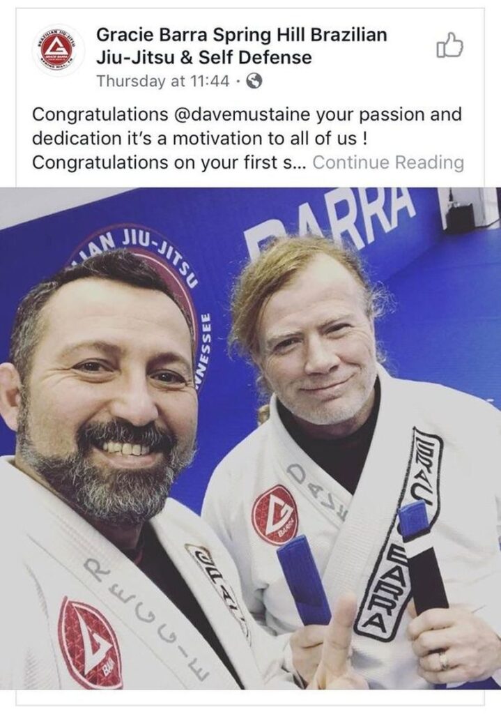 Dave Mustaine is the latest famed musician to enjoy the joys of jiu jitsu. Mustaine is currently 59 years old – he is best known as the co-founder, lead vocalist, guitarist and primary songwriter of the American heavy metal band Megadeth, as well as the original lead guitarist of  Metallica.