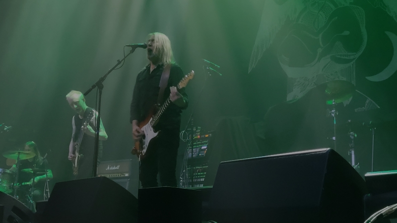 De heren van Paradise Lost zijn ook pioniers, maar dan van het death / doom genre en ze worden gezien als de grootste invloed voor het latere gothic metal genre. De band is gestart in 1988, zanger Nick Holmes en gitarist Greg Mackintosh zijn de schrijvers van muziek en teksten. Gitarist Aaron Aedy en bassist Stephen Edmondson zijn net als de 2 componisten al vanaf het begin bij de band. Drummers worden wel eens gewisseld, maar nu zit Jeff Singer op de drumkruk. Doom gerelateerde muziek van deze heren, dat is meestal niet vrolijkheid ten top en ook met dit bandje is dat zo, maar het is wel gaaf wat ze doen. Ik houd van het lekkere, trage, slepende ritme en de zang zowel clean als grunt is zuiver en vet. Nick merkt op dat er veel mannen met baarden en een kaal hoofd in het publiek staan net zoals hijzelf. Het nummer wat volgt is ‘No Hope In sight’. Hij heeft dus ook nog humor. Dat is overigens het enige nummer van het album ‘The Plague Within’ wat vanavond gespeeld wordt. Van de 17 albums die uitgebracht zijn in de 37 jaar dat de band bestaat, staan er van 7 albums nummers op de tracklist.