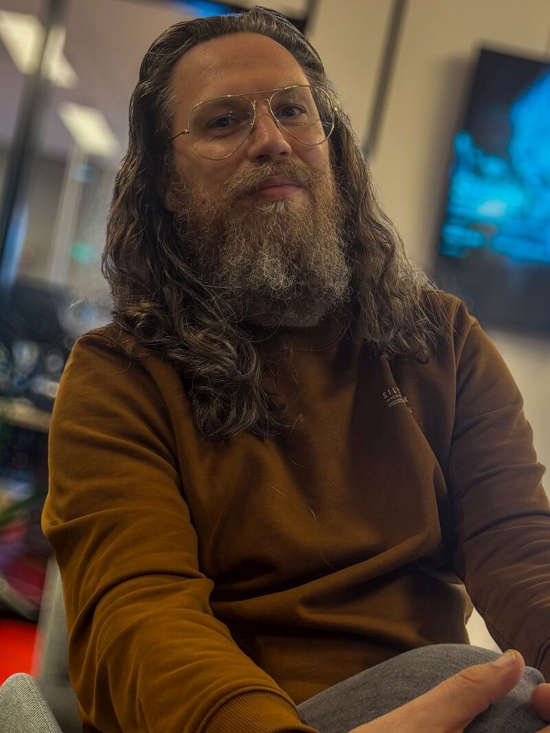[JAIMY] Op een gegeven moment viel zijn naam in een gesprek en als je dan denkt, dat klinkt goed, dan gaan we aan de slag. Een eerste belletje en op Eurosonic 2025 zijn wij in Groningen bij zijn atelier langs geweest en hebben daar een heel leuk gesprek gehad.