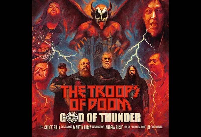 Guedz explains: “Since THE TROOPS OF DOOM was formed back in 2020, we’ve used ‘God Of Thunder’ as a pre-intro in our shows. Whenever the audience hears this song playing through the P.A., they already know the band is about to hit the stage. It’s almost a ritual for us. We all grew up listening to KISS, so this track has always held a special meaning.”